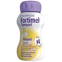 Fortimel Compact ist eine hochkalorische Trinknahrung in einer besonders kleinen 125 ml Portion mit der derzeit höchsten Energie-und Nährstoffdichte (2,4 kcal/ml). Fortimel Compact ist voll bilanziert. D.h. alle essentiellen Nährstoffe und lebenswichtigen Vitamine, Mineralstoffe und Spurenelemente sind im ausgewogenen Verhältnis enthalten, so dass man sich mit Fortimel Compact sogar ausschließlich ernähren könnte. Eine 125 ml-Flasche Fortimel Compact enthält 300 kcal und 12 g Eiweiß.