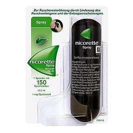 Nicorette Spray lindert Nicotinentzugserscheinungen einschließlich des Rauchverlangens, d. h. die Beschwerden, die beim Einstellen des Rauchens auftreten. Wenn Sie Ihrem Körper plötzlich kein Nicotin mehr über das Rauchen von Tabak zuführen, können bei Ihnen unangenehme Empfindungen auftreten, die als Entzugserscheinungen bezeichnet werden. Durch die Anwendung von Nicorette Spray können Sie diese unangenehmen Empfindungen und das Rauchverlangen lindern oder ganz verhindern. Dies liegt daran, dass Sie Ihrem Körper über einen kurzen Zeitraum weiterhin eine kleine Menge Nicotin zuführen. Nicorette Spray enthält keinen Teer, Kohlenmonoxid oder andere im Zigarettenrauch befindlichen Giftstoffe.