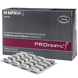 Verzehrempfehlung: Täglich 2 Kapseln mit etwas Flüssigkeit zu oder nach einer Mahlzeit einnehmen. Bei weiteren Fragen zum Verzehr wenden Sie sich bitte an Ihren Arzt. Nur unter ärztlicher Aufsicht verwenden. Vor der ersten Einnahme und bei Änderungen der Einnahme ist eine Rücksprache mit Ihrem Arzt erforderlich. Kein vollständiges Lebensmittel. Für Kinder unerreichbar aufbewahren. Die spezifische und studiengeprüfte Zusammensetzung von PROfertil® ist den besonderen Ernährungserfordernissen im angegebenen Anwendungsbereich angepasst und deckt gezielt den erhöhten Bedarf an Mikronährstoffen von Männern mit Fertilitätsstörungen.