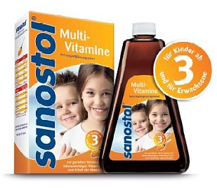 Sanostol® Multivitaminsaft für Kinder ab 3 Jahre, Jugendliche und Erwachsene.